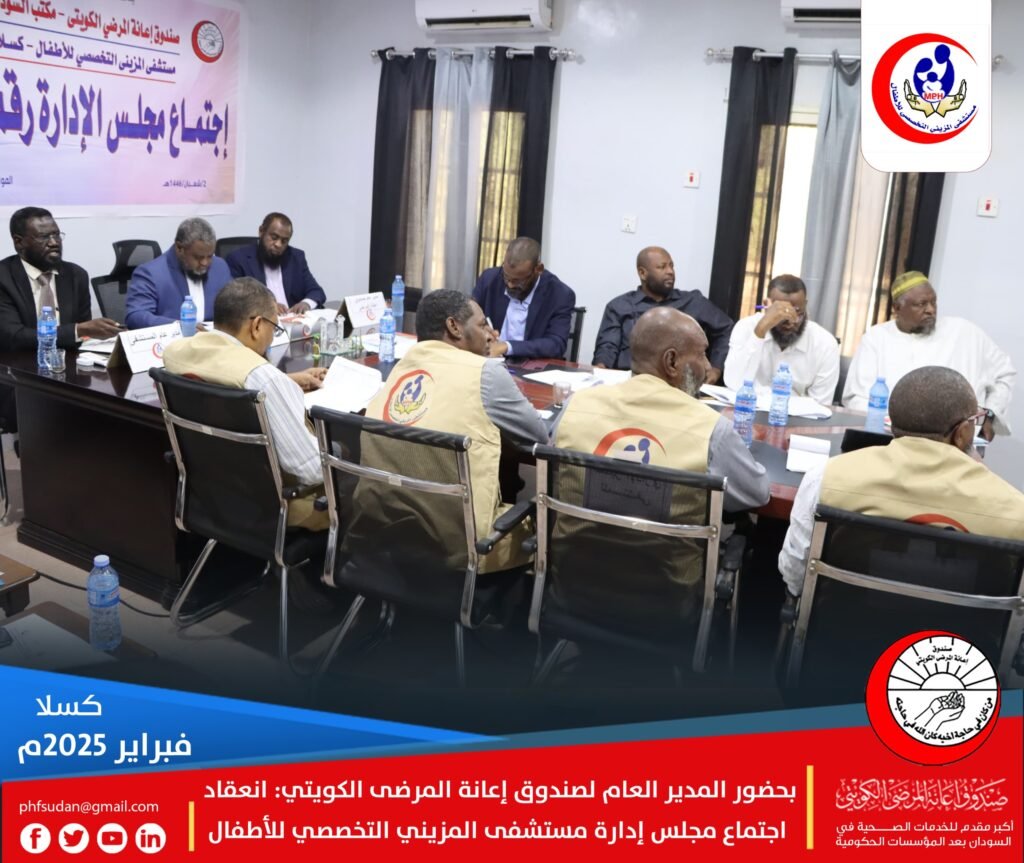 عُقد صباح السبت، الأول من فبراير 2025، الاجتماع السادس عشر لمجلس إدارة مستشفى المزيني التخصصي للأطفال، وذلك بمقر المستشفى برئاسة الاستاذ آدم على حامد رئيس المجلس وحضور د. كمال الدين يعقوب، المدير العام لصندوق إعانة المرضى الكويتي ، ود. عبدالمجيد فضل الله، المدير التنفيذي، ود. خالد محجوب، مدير المؤسسات العلاجية، ود. محمد عبد الرحمن سليمان، المدير العام للمستشفى، وأعضاء مجلس الإدارة.