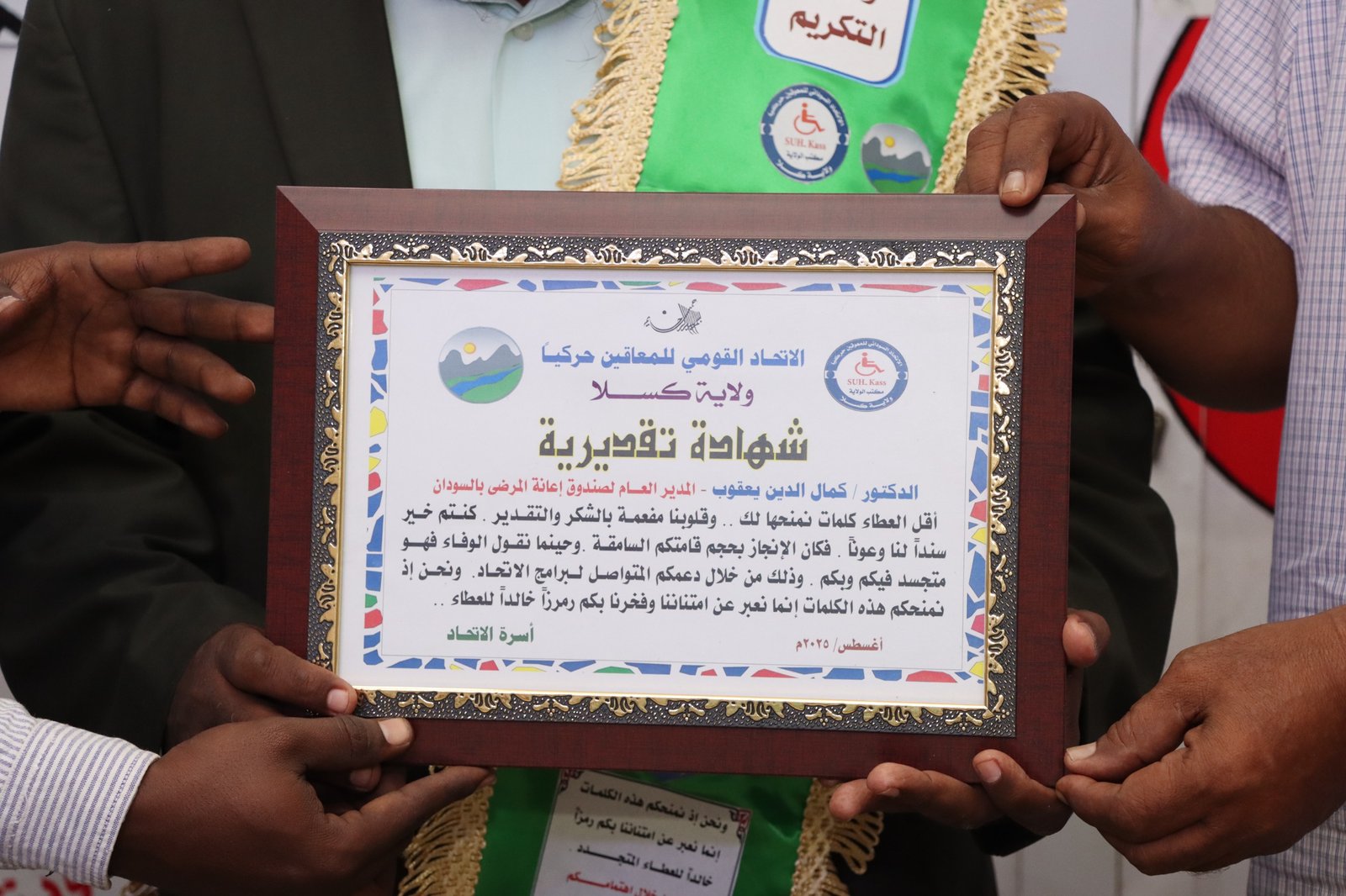 وقال الأستاذ عز الدين عبدالله علي رئيس الاتحاد، إن التكريم يأتي عرفاناً لمساهمات الصندوق في دعم وإسناد المعاقين وأسرهم عبر عدة مشاريع.