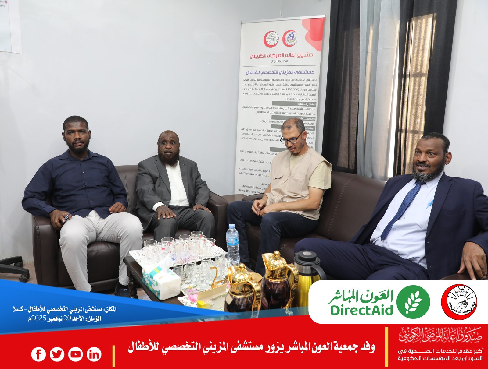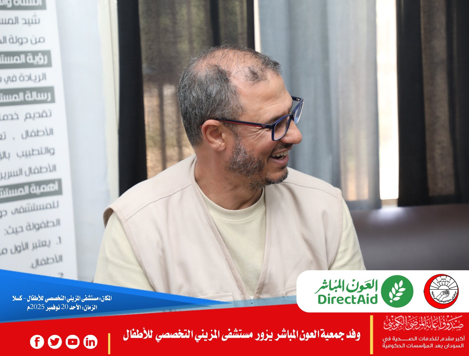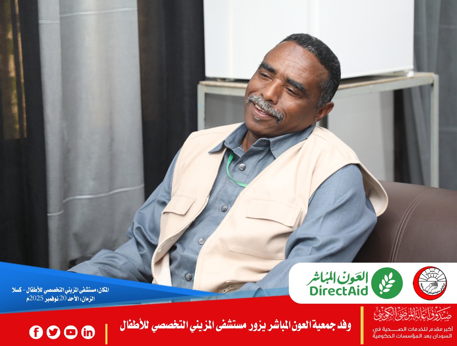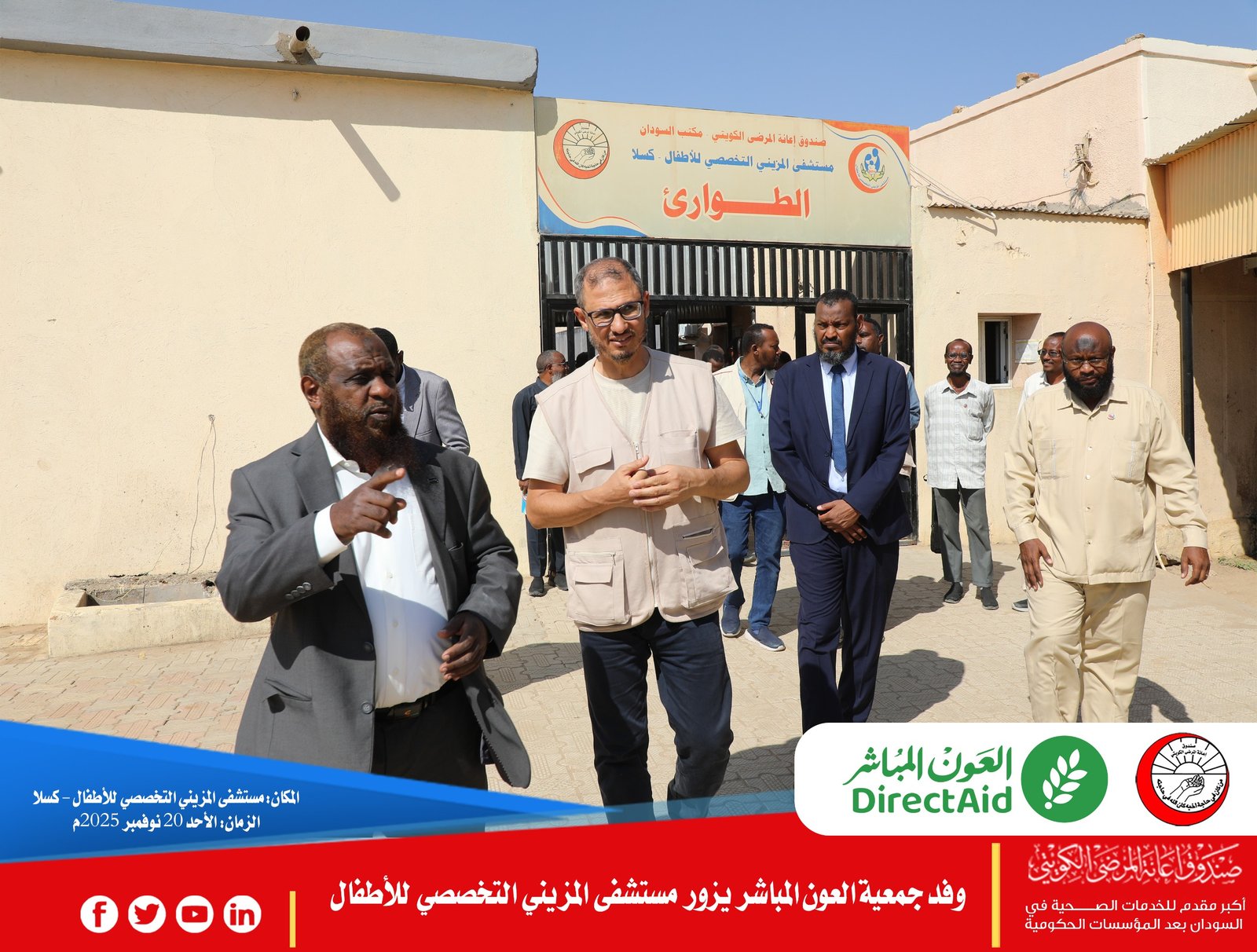 تواصلت فعاليات زيارة وفد جمعية العون المباشر الزائر للسودان، في يومها الثاني، برئاسة د. إكرامي الحفناوي، رئيس قسم الرعاية الصحية، والمهندس أحمد الشيخ، المدير الإقليمي لمكتب الجمعية بالسودان، في إطار تعزيز التعاون الصحي والإنساني.