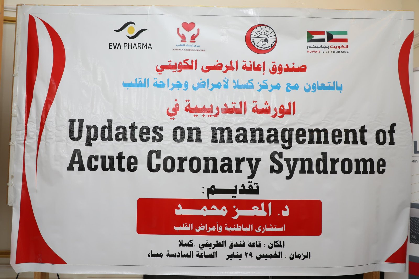 نظّم صندوق إعانة المرضى الكويتي، بالتعاون مع مركز كسلا لأمراض وجراحة القلب، ورشة تدريبية متخصصة بعنوان «مستجدات علاج متلازمة الشريان التاجي الحادة» (Updates on Management of Acute Coronary Syndrome)، وذلك مساء الخميس 29 يناير، بقاعة فندق الطريفي بمدينة كسلا.