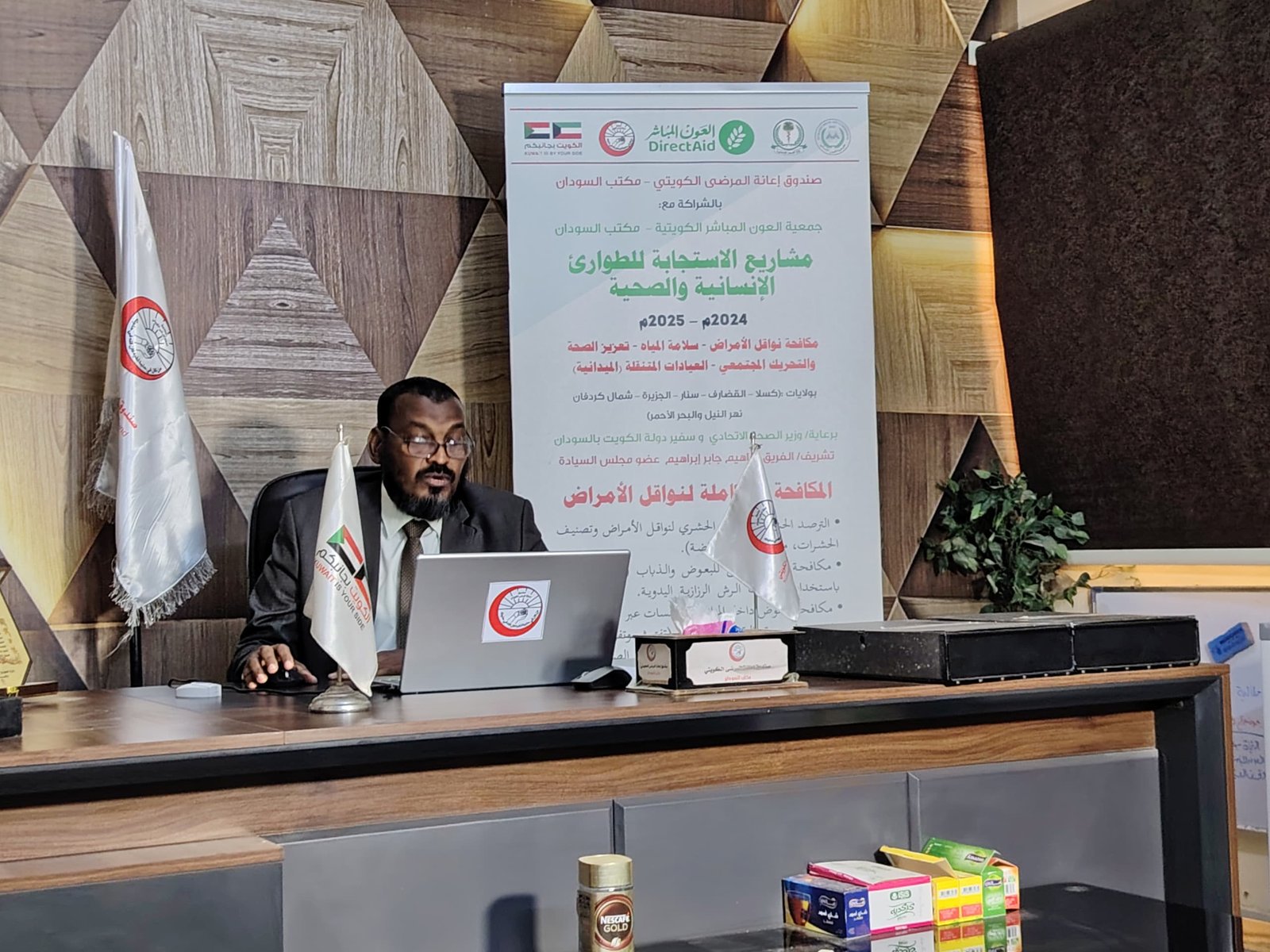 وأشار إلى استمرار تقديم وتطوير الخدمات الصحية الأولية والثانوية والثالثوية عبر أكثر من 300 منفذ في 13 ولاية من ولايات السودان ، إلى جانب تنسيق الجسر الجوي والبحري الكويتي الذي شمل 36 رحلة جوية و3 رحلات بحرية لتوفير الإمدادات الطبية العاجلة، لا سيما أدوية زارعي الكلى. كما شمل الدعم تنفيذ مشروع الترصد المرضي بولاية الخرطوم، وإعادة تأهيل وإعمار 23 مركزاً صحياً ومراكز غسيل كلى بعدد من الولايات، وتزويدها بالمعدات الطبية ومحطات الأكسجين.