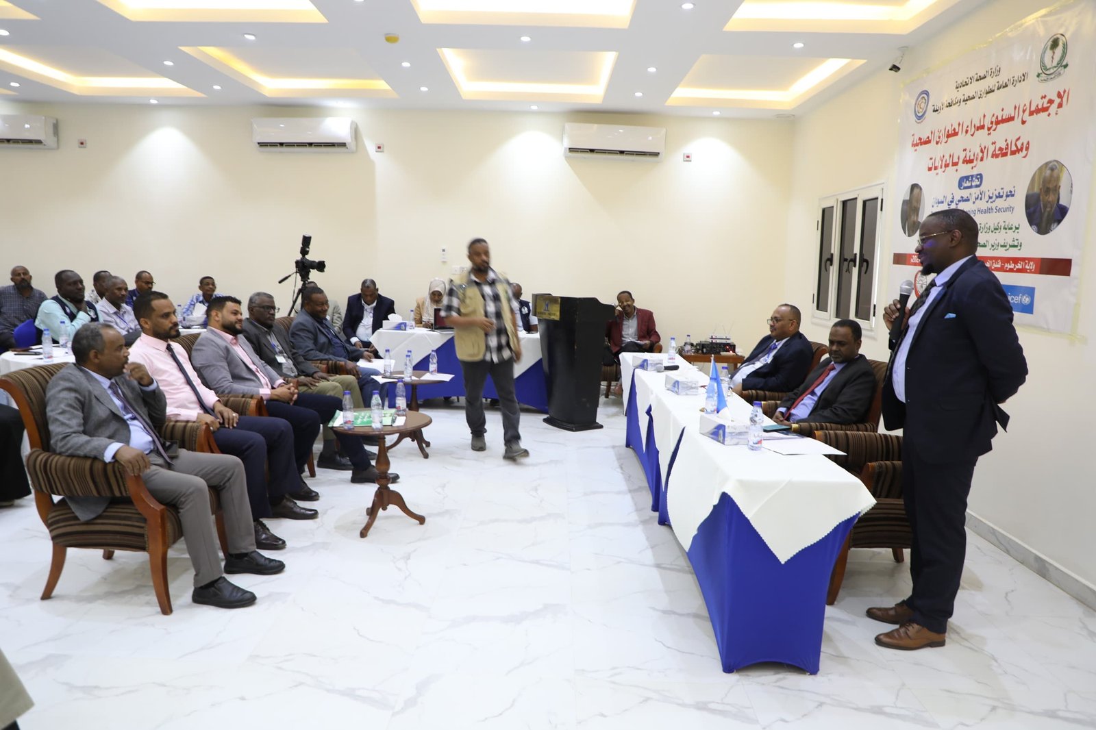 وأشاد د. علي بابكر سيد أحمد، وكيل وزارة الصحة الاتحادية، بجهود الإدارة العامة للطوارئ الصحية ومكافحة الأوبئة في الحد من المخاطر الصحية، مثمناً إسهامات المنظمات المساندة، وعلى رأسها صندوق إعانة المرضى الكويتي ومنظمة الصحة العالمية ويونيسف. ودعا خلال مخاطبته الاجتماع صباح اليوم إلى الانتقال من مرحلة الاستجابة للطوارئ إلى الاستدامة، عبر وضع استراتيجيات وآليات واضحة، وتوثيق التجارب، وتعزيز دور المجتمع وتوظيف طاقاته لتحقيق الأهداف الصحية.